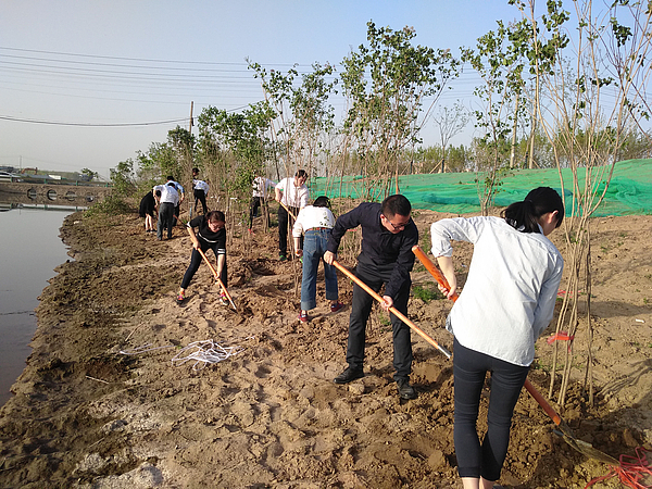交流學習后,全體干部員工與施工人員共同栽植丁香60余株,在新河岸邊形成了一道優美的綠色邊際線。在栽植過程中,經驗豐富的一線人員為大家普及樹種專業述語、生長特性及種植技術。