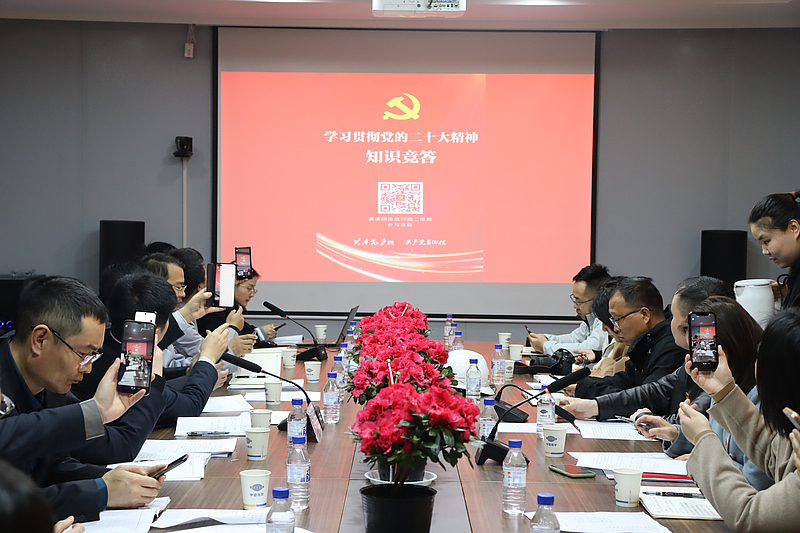 活動中,全體人員首先共同觀看《開局之年 關(guān)鍵一課》黨的二十大專題短片;隨后,集中學(xué)習(xí)《習(xí)近平在學(xué)習(xí)貫徹黨的二十大精神研討班開班式上發(fā)表重要講話精神》《全面學(xué)習(xí)、全面把握、全面落實黨的二十大精神》《青年干部要鉚足“四股勁”》內(nèi)容,各支部黨員代表依次圍繞學(xué)習(xí)內(nèi)容進行交流發(fā)言;最后,組織開展“學(xué)習(xí)貫徹黨的二十大精神知識競答”線上答題。