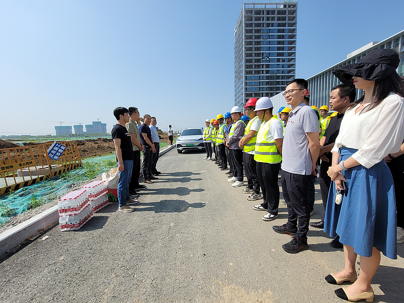 項(xiàng)目負(fù)責(zé)人對(duì)科創(chuàng)谷五路、西北四路照明工程施工進(jìn)度和整體建設(shè)情況進(jìn)行逐一講解。企業(yè)管理部黨支部書記、陜西MIC黨支部書記為現(xiàn)場(chǎng)作業(yè)人員發(fā)放防暑物資,對(duì)高溫作業(yè)人員進(jìn)行慰問,并要求施工單位科學(xué)安排施工時(shí)間,加強(qiáng)防暑降溫保障,扛起安全生產(chǎn)主體責(zé)任,在確保安全和質(zhì)量的前提下,有力有序推進(jìn)項(xiàng)目建設(shè)。