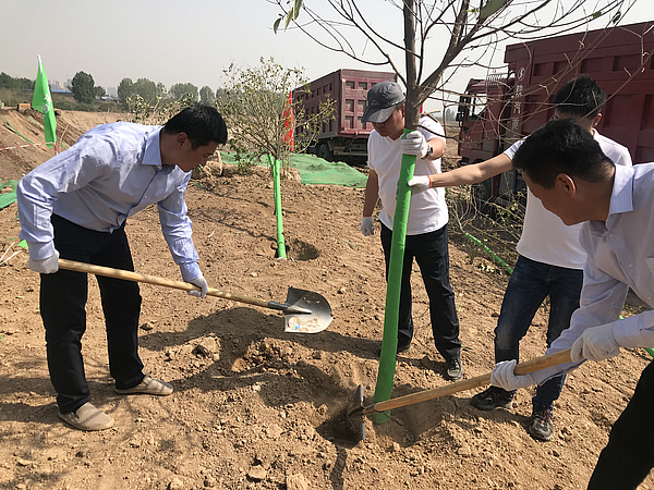 4月9日下午,投資公司黨支部組織全體員工在灃河灘面治理二期現場開展植樹增綠活動。本次活動是積極響應管委會全民義務植樹號召,也是持續推進增綠減霾工作的重要舉措。賈少龍同志參加活動。