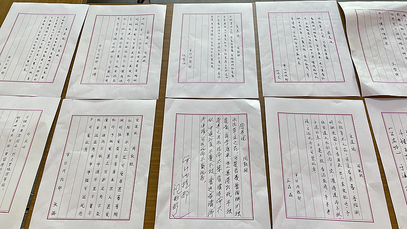 此次特色活動得到大家的積極響應(yīng),活動現(xiàn)場大家一字排開,摘抄有關(guān)廉潔自律的詩詞,所寫字體或大氣,或清秀,盡其所能地展現(xiàn)自身硬筆書法才能?;顒咏Y(jié)束后,大家紛紛表示,這次清廉主題書法競賽活動為大家上了一堂生動的廉潔文化課,書寫廉潔詩詞不僅能讓人感受到中國漢字文化的藝術(shù)魅力,又能對人的思想和行為進行警醒和鞭策,時刻提醒自己要守住底線。