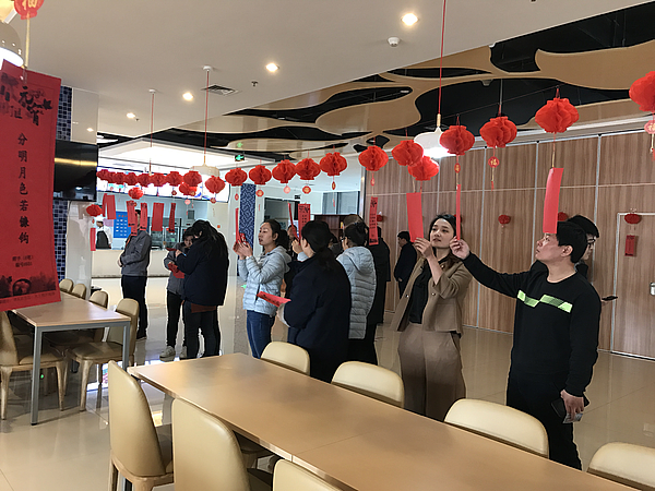 走進活動現場,紅彤彤的燈籠、各式各樣謎條懸掛在餐廳大堂里,營造出濃濃的節日氣氛。200余條的謎面涵蓋了成語典故、詞語歇后語、地名、專業名詞等,既具娛樂性,又具知識性。入園企業員工紛紛參與到現場猜謎,熱鬧非凡。猜謎現場,一位拿著好幾張謎條的企業員工說:“贏湯圓不是最重要的,主要是這種活動增加了我們的參與感、歸屬感,非常有趣。”