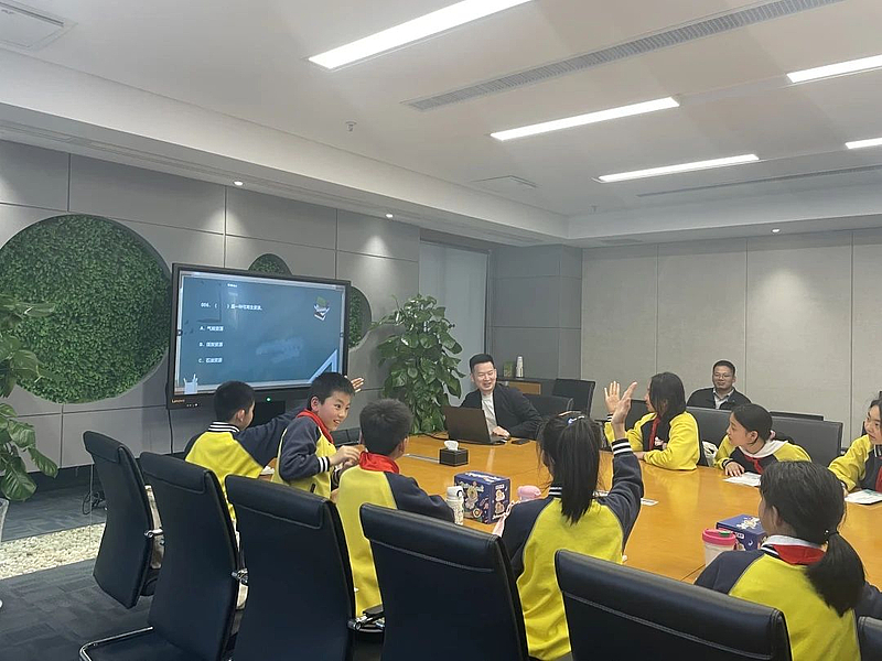 活動(dòng)當(dāng)天,灃西新城第四學(xué)校師生們前往“西咸新區(qū)青少年教育基地”——灃西新城總部經(jīng)濟(jì)園綜合能源供應(yīng)站進(jìn)行參觀。在專業(yè)的講解員帶領(lǐng)下,深入了解中深層地?zé)崮軣o(wú)干擾清潔供熱技術(shù)特點(diǎn)、原理及優(yōu)勢(shì)。此外,講解員還結(jié)合實(shí)例,介紹清潔能源在保障城市運(yùn)行、推動(dòng)社會(huì)發(fā)展方面發(fā)揮的重要作用。為了讓同學(xué)們更加深入地了解中深層地?zé)崮軣o(wú)干擾清潔供熱技術(shù)原理,還特別設(shè)置了互動(dòng)問(wèn)答環(huán)節(jié),互動(dòng)題目涵蓋了全球氣候變化、能源消費(fèi)結(jié)構(gòu)、地?zé)崮芾梅绞郊爸攸c(diǎn)政策解讀等多個(gè)方面。同學(xué)們興趣高昂,踴躍參與,紛紛舉手競(jìng)答,活動(dòng)現(xiàn)場(chǎng)氣氛熱烈。