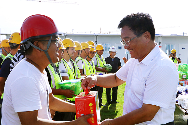 7月23日,正值“大暑”,集團黨委書記、董事長楊建柱,總經(jīng)理姜勤發(fā)前往灃西第二學(xué)校、第三小學(xué)、第四學(xué)校項目工地及同德佳苑小區(qū),看望慰問奮戰(zhàn)在一線的員工,為他們送去西瓜、涼茶、藥品等防暑降溫物品。