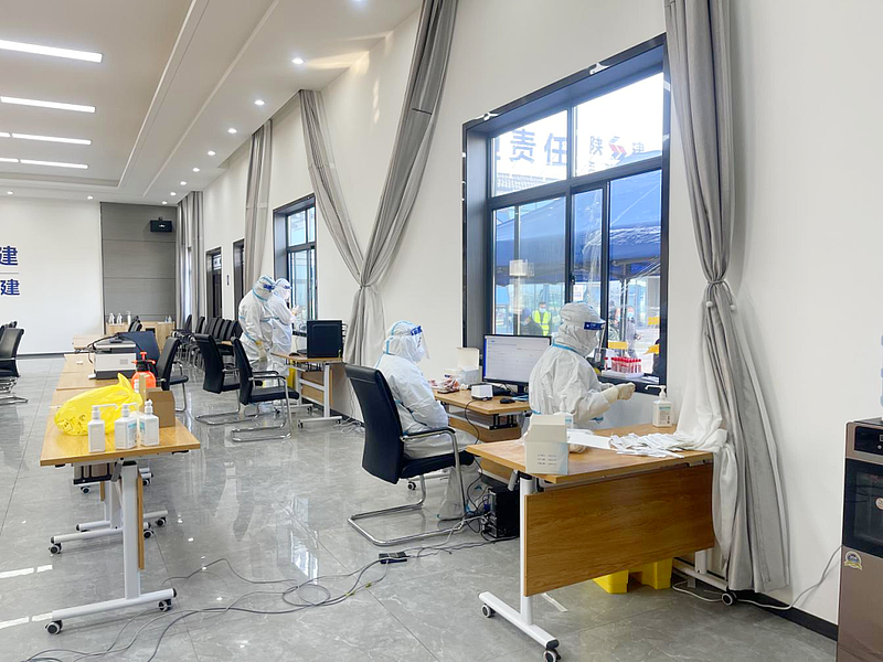 在房建項(xiàng)目現(xiàn)場(chǎng),由房建項(xiàng)目部19人組成疫情防控青年突擊隊(duì),赴一線開(kāi)展各項(xiàng)防疫工作,督促各參建單位啟動(dòng)疫情防控專項(xiàng)方案,協(xié)助醫(yī)護(hù)人員完成核酸采樣工作,并對(duì)每輪核酸檢測(cè)結(jié)果進(jìn)行統(tǒng)計(jì)、審核、報(bào)送。