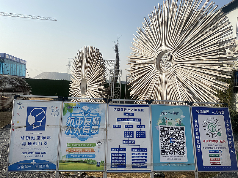 在秦創(chuàng)原生態(tài)科創(chuàng)島項(xiàng)目項(xiàng)目現(xiàn)場(chǎng),全面落實(shí)封閉管理措施,組織施工單位實(shí)行分單元模塊化管理方式,采取工人錯(cuò)峰就餐、分批次核酸檢測(cè)等多項(xiàng)措施,并積極做好疫情防控物資儲(chǔ)備及發(fā)放工作。