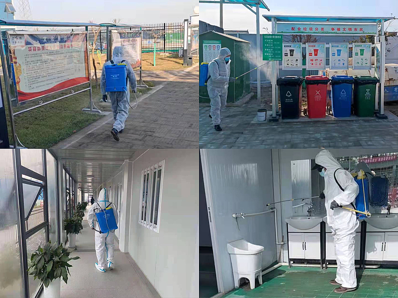 配齊防疫帳篷、體溫計(jì)和消毒劑等防疫物資,每日安排專人對(duì)辦公區(qū)域、門禁區(qū)等公共區(qū)域和住宿區(qū)進(jìn)行消殺,并張貼消毒記錄表,做到病毒消殺無(wú)死角。