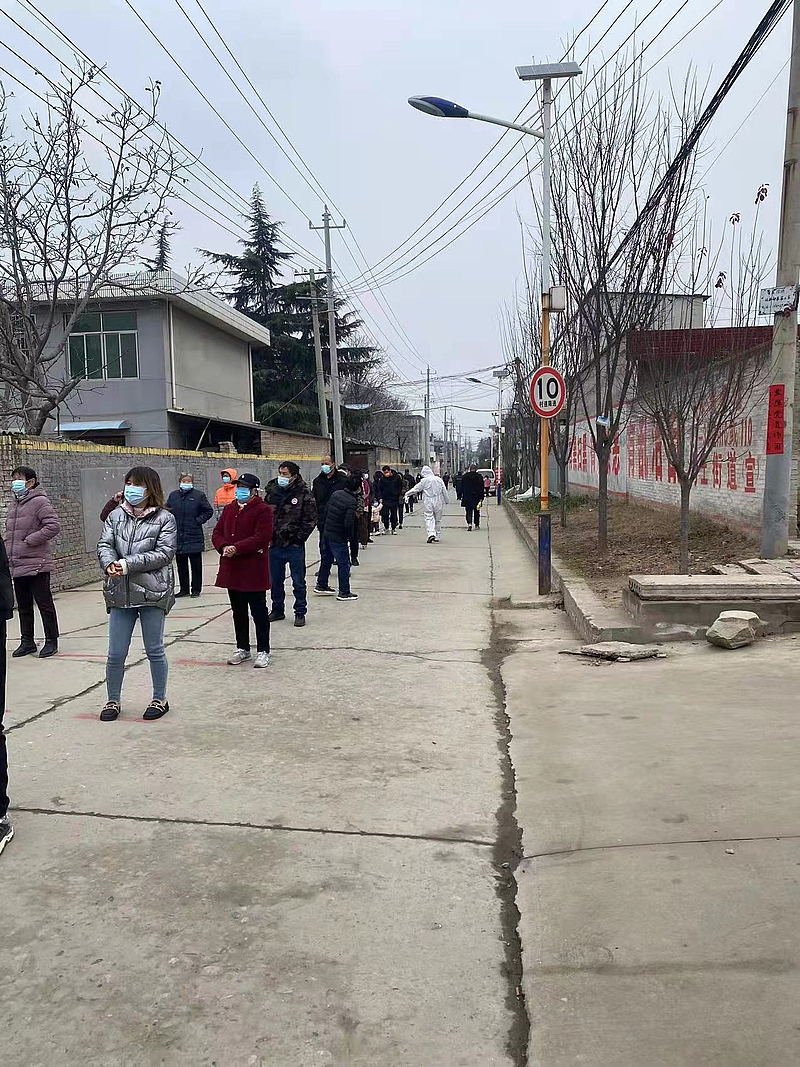 早上5點,天還未亮時,劉恒希顧不上吃早飯便啟程前往客省莊村,到達后他便與同事開始了緊張而忙碌的核酸檢測秩序維護工作,在新一輪核酸檢測完成后,他又立刻投入到“敲門行動”中,挨家挨戶上門詢問村民核酸檢測情況、是否有生活困難等。“每次執勤工作基本上是從早上7點開始,一直忙到下午6點,要對所有村民當天的核酸檢測情況和有無生活困難進行一一核實,一定做到不漏一人。”劉恒希說到這十幾天的工作時,他覺得完成對所有村民進行實名登記和核酸檢測工作,并如實準確地上報統計信息,是這場與病毒較量的關鍵環節,對此他絲毫不敢怠慢每一項工作。