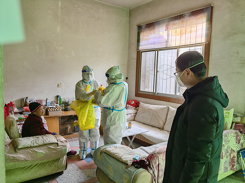 李杭嶧協助醫護人員入戶采集核酸