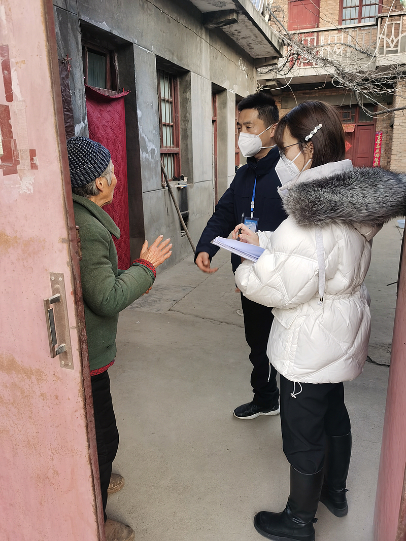 潘笑月入戶核實人員信息并對獨居老人信息登記造冊