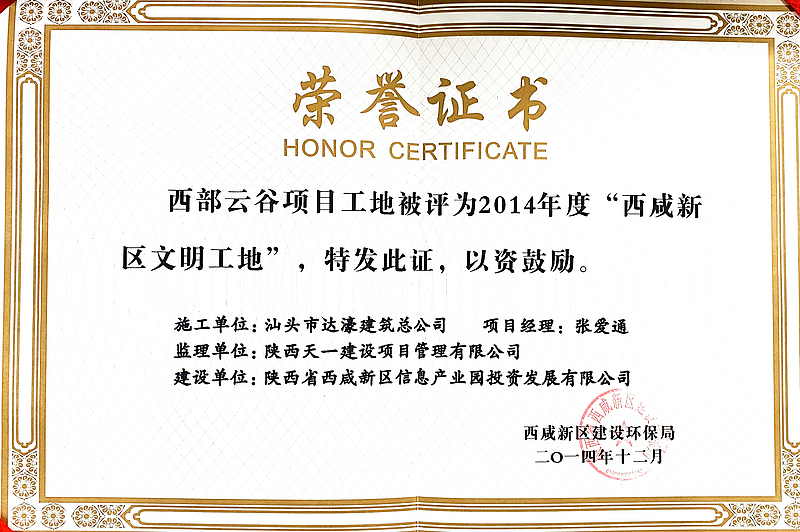 西部云谷二期項目榮獲陜西省建筑優質結構工程