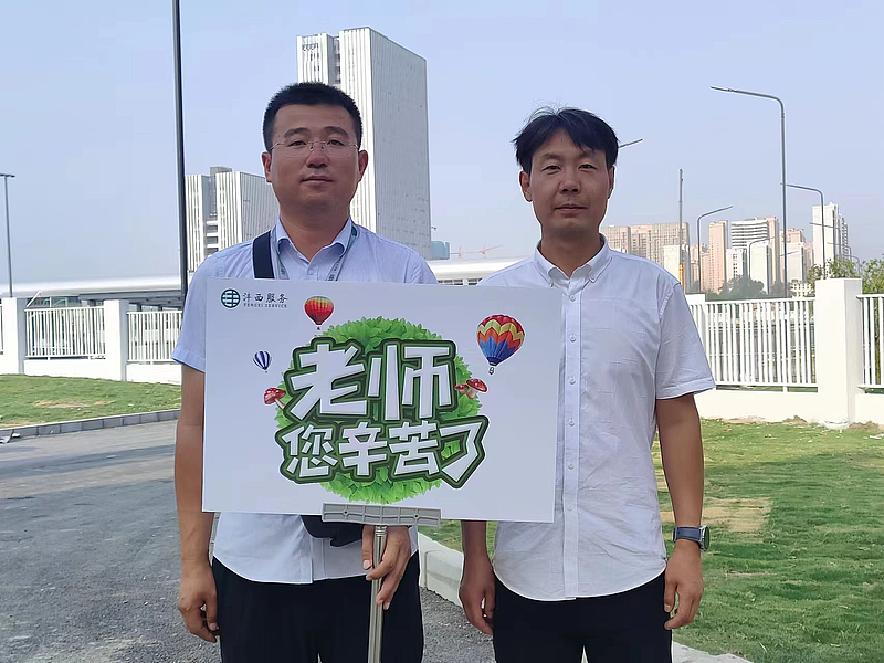 9月8日清晨,在服務(wù)公司入駐的19所學校大門外,各校管理人員手持精心準備的“老師,您辛苦了!”展示牌靜候每位老師的到來。一句句發(fā)自肺腑的問候,一張張燦爛的笑臉,溢滿的是濃濃的心意。