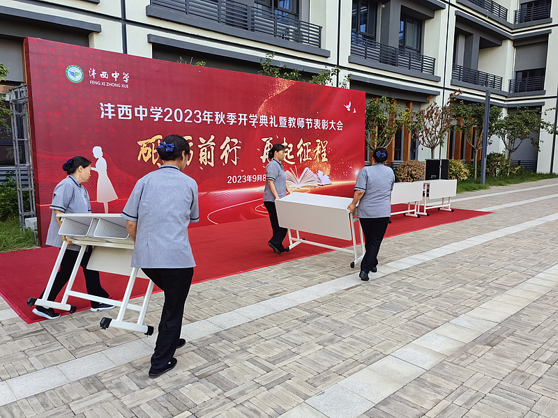 學校各項服務(wù)工作的良好開展,是校園教育教學工作的保障。為了確保在管學校教師節(jié)各項慶?;顒拥捻樌_展,早在活動開始舉辦前,服務(wù)公司各崗位同事們便緊鑼密鼓地忙碌起來,為當天活動做好萬全保障,即便汗流浹背,也不曾有一絲怨言。