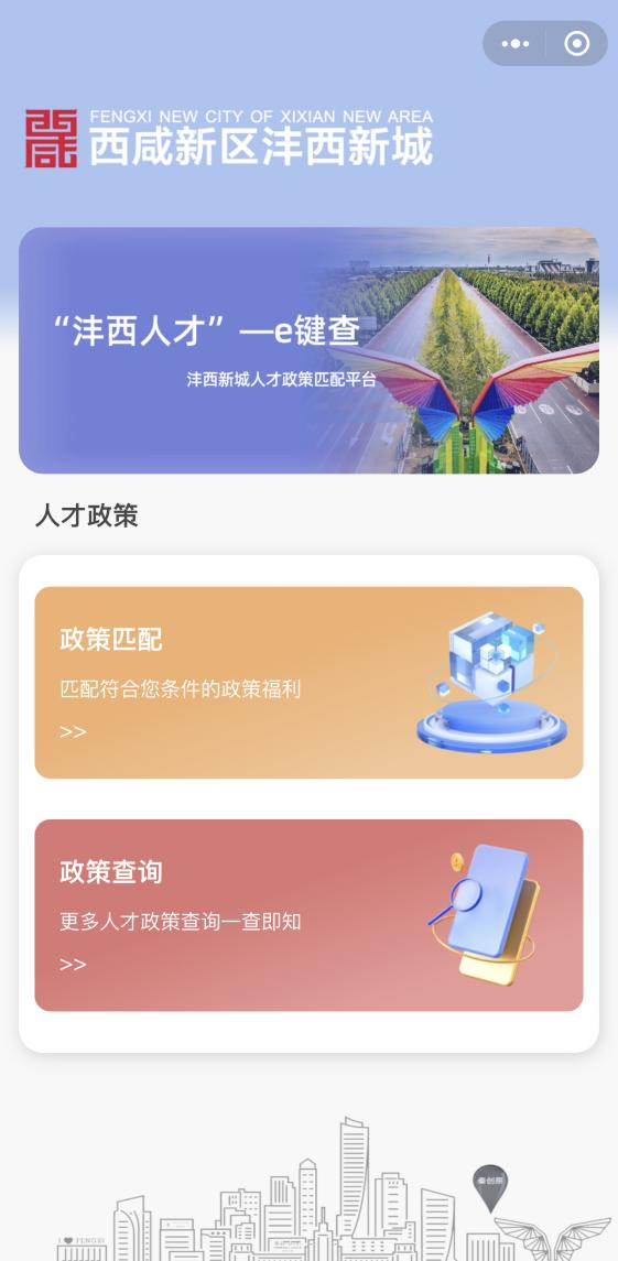 “灃西人才e鍵查”小程序由灃西新城組織和人力資源部開發,根據年齡、學歷、職業資格、人才稱號等信息,匹配所屬人才類型,可享受子女教育、人才安居、醫療健康等政策以及申報聯系方式。