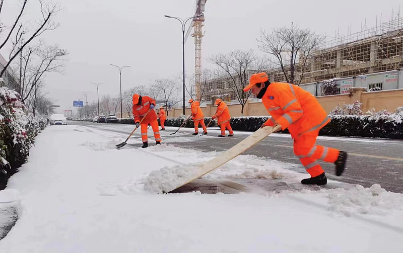 大雪紛飛,服務公司對城區相關路段除雪工作實施責任包干,重點開展非機動車道、人行道等人工清掃,出動撒布機、除雪車輛6輛,巡查車輛8輛,參與人數多達600余人,市政道路保潔人員在寒風中浴“雪”奮戰,利用鏟雪板、鐵锨、掃雪車、鏟雪車等工具,及時掃除道路積雪堅冰,撒播融雪劑2噸,清理積水區域50余處。大雪次日凌晨,轄區所有路面干爽無結冰,服務公司爭分奪秒為出行群眾掃出了一條條“平安路”,高質量完成了此次道路除雪保暢工作。