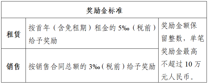 (二)租賃:租賃客戶(hù)簽署租賃合同,并付清租賃保證金及首年租金后,一次性?xún)冬F(xiàn)獎(jiǎng)勵(lì)金。