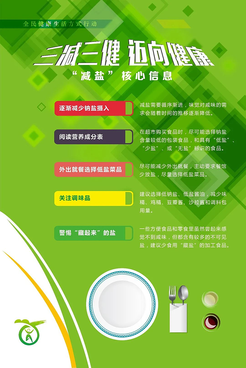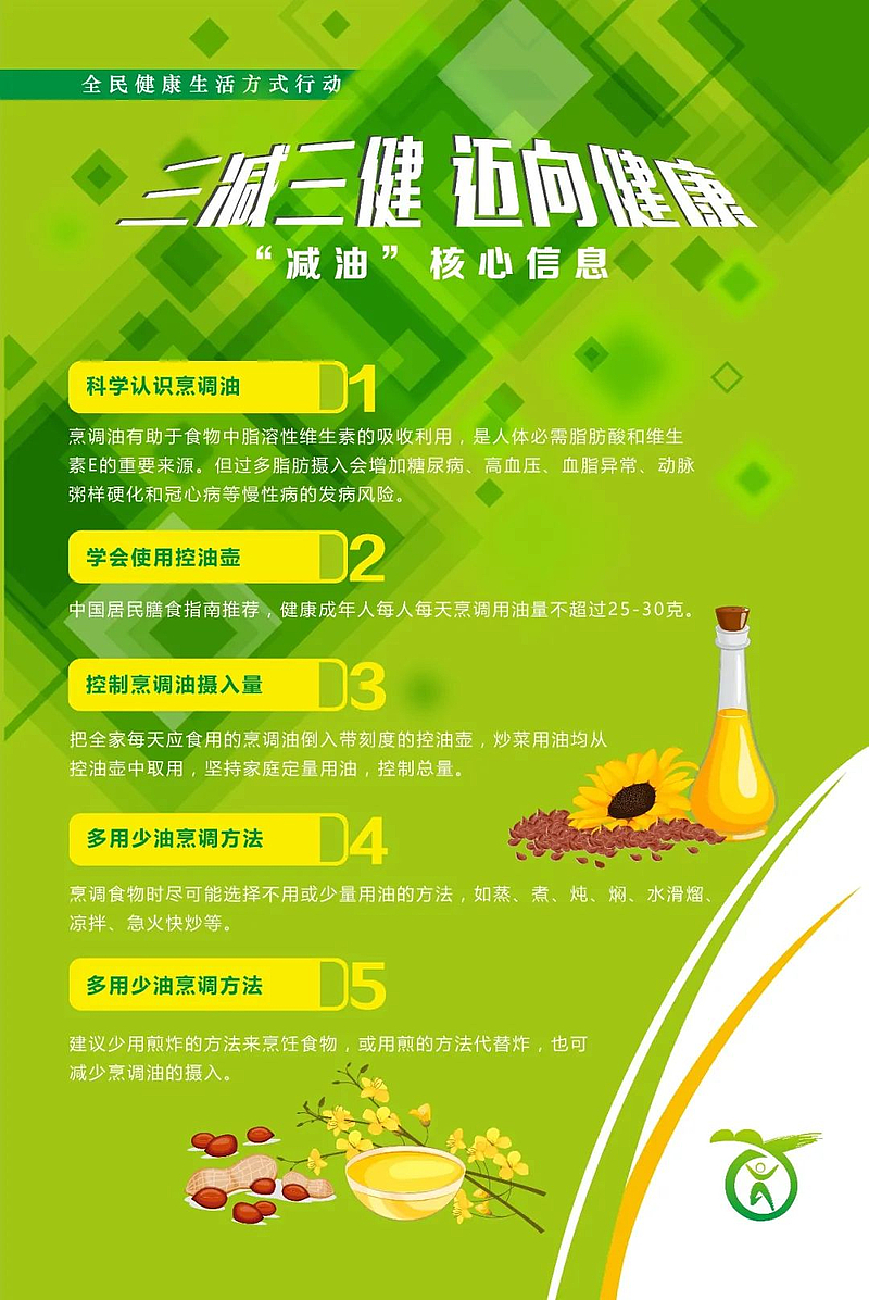 “三減”即減鹽、減油、減糖,作為生活必需的調味品,如果攝入過量,可能會導致慢性病的發生,其對健康的影響不可小覷。