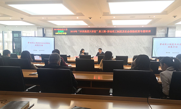 為進(jìn)一步提高員工對用工制度、社保政策的了解程度,規(guī)范員工管理程序,構(gòu)建和諧勞資關(guān)系,3月21日下午,集團(tuán)公司人力資源部組織召開2019年“灃西集團(tuán)大講堂”第三期——勞動用工制度及社會保險(xiǎn)政策專題培訓(xùn)。本次培訓(xùn)特邀陜西匯豐人力資源開發(fā)(集團(tuán))有限公司副總經(jīng)理賈國棟老師授課。集團(tuán)公司各部門、各子公司50余名員工代表參加培訓(xùn)。