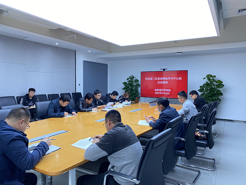 4月21日下午,灃西集團市政工程項目管理部組織召開傳達集團公司第4次理論中心組學習會暨黨史學習教育第3次專題學習會議精神,全體干部員工參加。會上,部門負責人傳達了《習近平總書記在黨史學習教育動員大會上的講話》及國資委評論員文章《碳中和目標下企業應加強四方面關鍵能力建設》等文件內容。