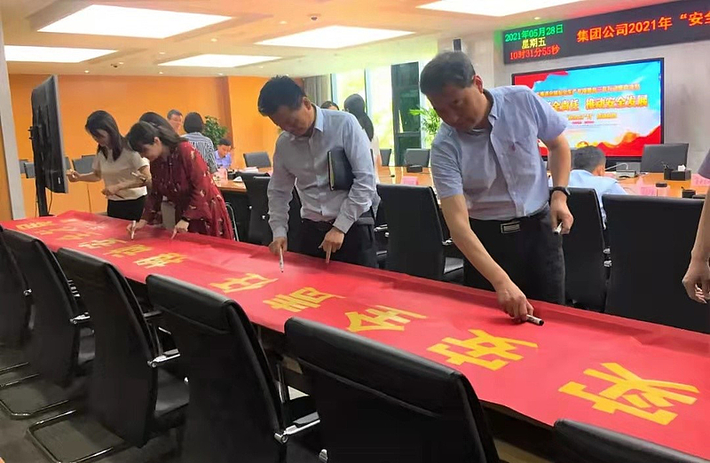 會(huì)議傳達(dá)學(xué)習(xí)了習(xí)近平總書記關(guān)于安全生產(chǎn)的重要論述,安排部署了集團(tuán)2021年“安全生產(chǎn)月”和“安全生產(chǎn)萬里行”活動(dòng)各項(xiàng)工作,各部門、各子公司負(fù)責(zé)人在安全宣傳橫幅上簽名。