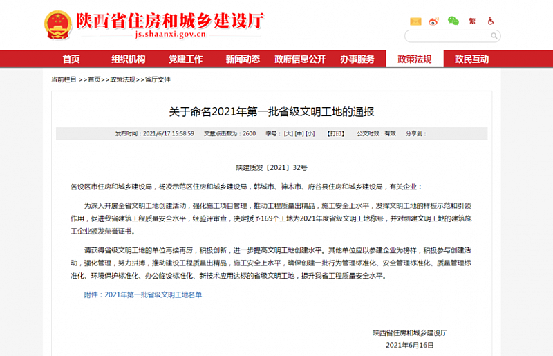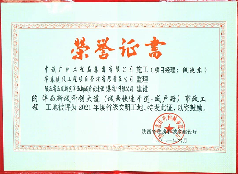 近日,陜西省住房和城鄉(xiāng)建設(shè)廳發(fā)布了《關(guān)于命名2021年第一批省級文明工地的通報》,由灃西集團(tuán)建設(shè)的科創(chuàng)大道市政工程項目榮獲省級文明工地稱號。