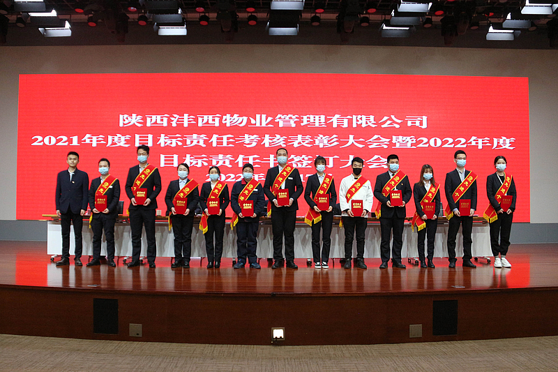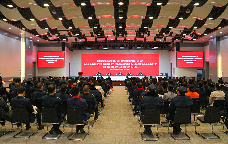 2月17日上午,灃西集團物業公司召開2021年度目標責任考核表彰暨2022年度目標責任書簽訂大會,集團總經理、物業公司董事長姜勤發出席會議并講話,物業公司全體領導班子成員、職能部門員工、各項目員工代表、獲獎員工代表參加會議。