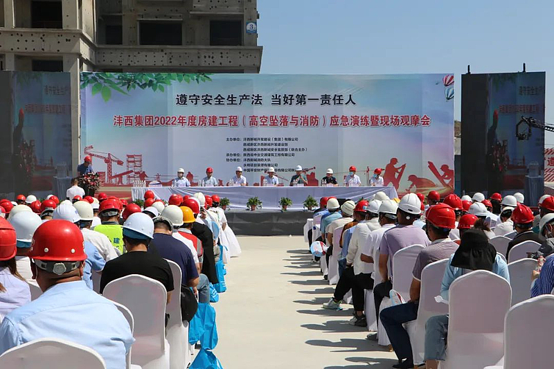 灃西集團開展2022年度房建工程(高空墜落與消防)應急演練暨現場觀摩會
