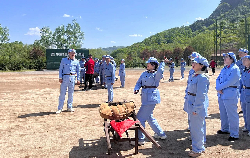 紅色教育結束后,拓展訓練拉開帷幕。短短半小時的破冰開營,參訓學員迅速進入培訓狀態,在教練的指導下各自組隊,確定了隊名、隊歌、口號,設計了logo,進行了團隊風采展示。對抗賽正式開始。
