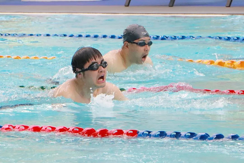 泳池賽道內你追我趕,蛙泳、自由泳輪番上演,隨著浪花翻滾,展現著速度與激情。在最后的沖刺階段,參賽選手們紛紛火力全開,用拼搏的信念一次次沖擊著體能的極限,一遍遍刷新著自己的最好成績。