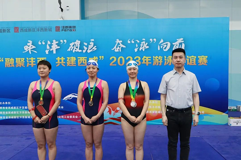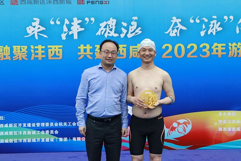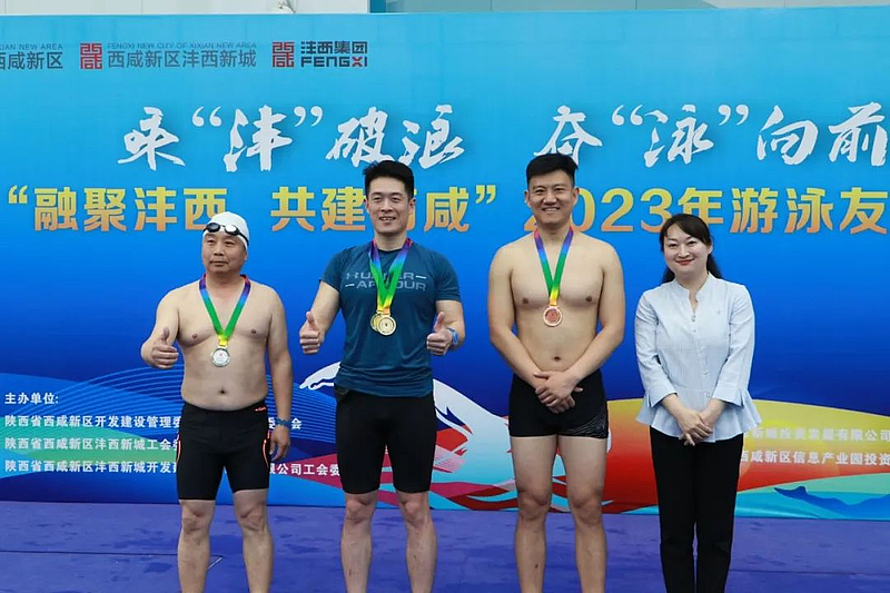 4月14日,由西咸新區機關工會、灃西新城工會及灃西集團工會共同舉辦的“融聚灃西 共建西咸”2023年游泳友誼賽在灃西新城綠色零碳游泳中心舉行。西咸新區組織人事部副部長于春輝、黨群工作部副部長王文濤,灃西新城工會副主席李濤,灃西集團紀委書記、工會主席曾志勇出席活動。