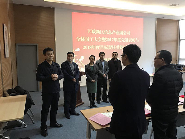 2月22日下午,信息產(chǎn)業(yè)園公司舉行全體員工大會暨2017年先進(jìn)表彰與2018年度目標(biāo)責(zé)任書簽訂儀式。