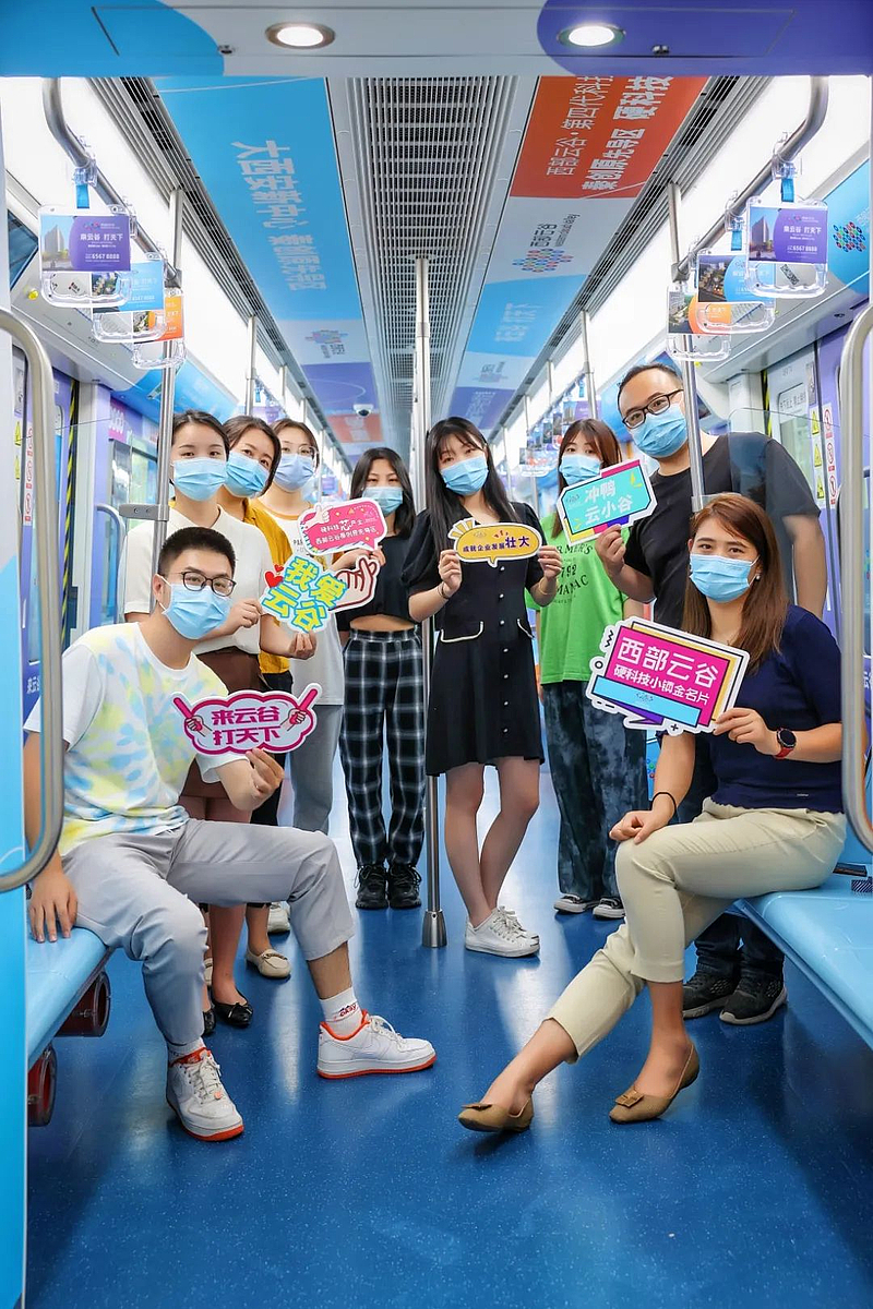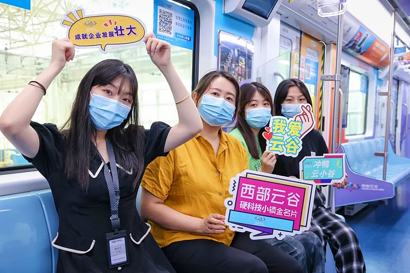 7月31日,西安地鐵一號(hào)線,一輛滿載“云谷元素”的列車,緩緩進(jìn)站...