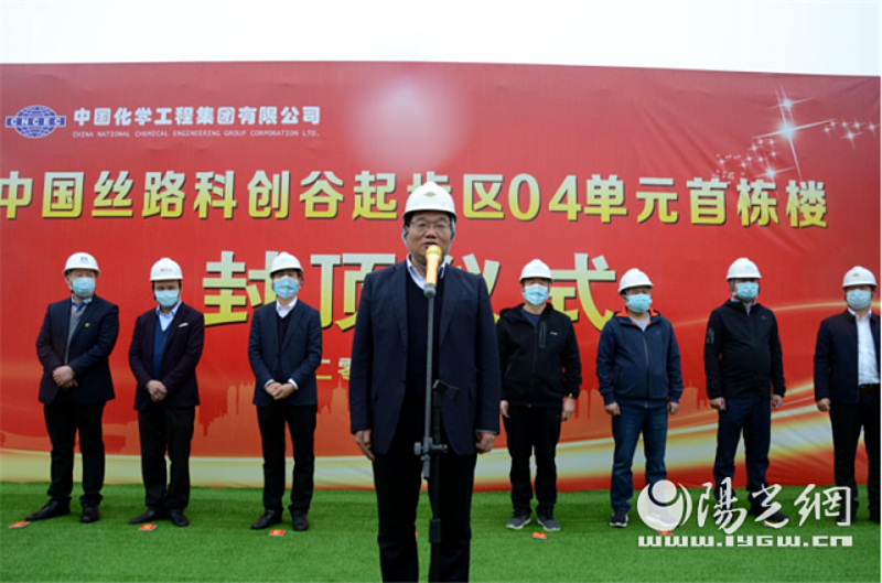 灃西開發建設集團黨委書記、董事長楊建柱,灃西開發建設集團黨委副書記、副董事長、總經理姜勤發,灃西新城住房和城鄉建設局局長李宇超,科元建設常務副總經理蘇小亮,永明項目管理有限公司總經理何磊,中國化學灃西指揮部黨支部書記、指揮長祁潤平等出席封頂儀式。楊建柱宣布首棟單體正式封頂,姜勤發、李宇超、何磊、祁潤平等分別致辭。